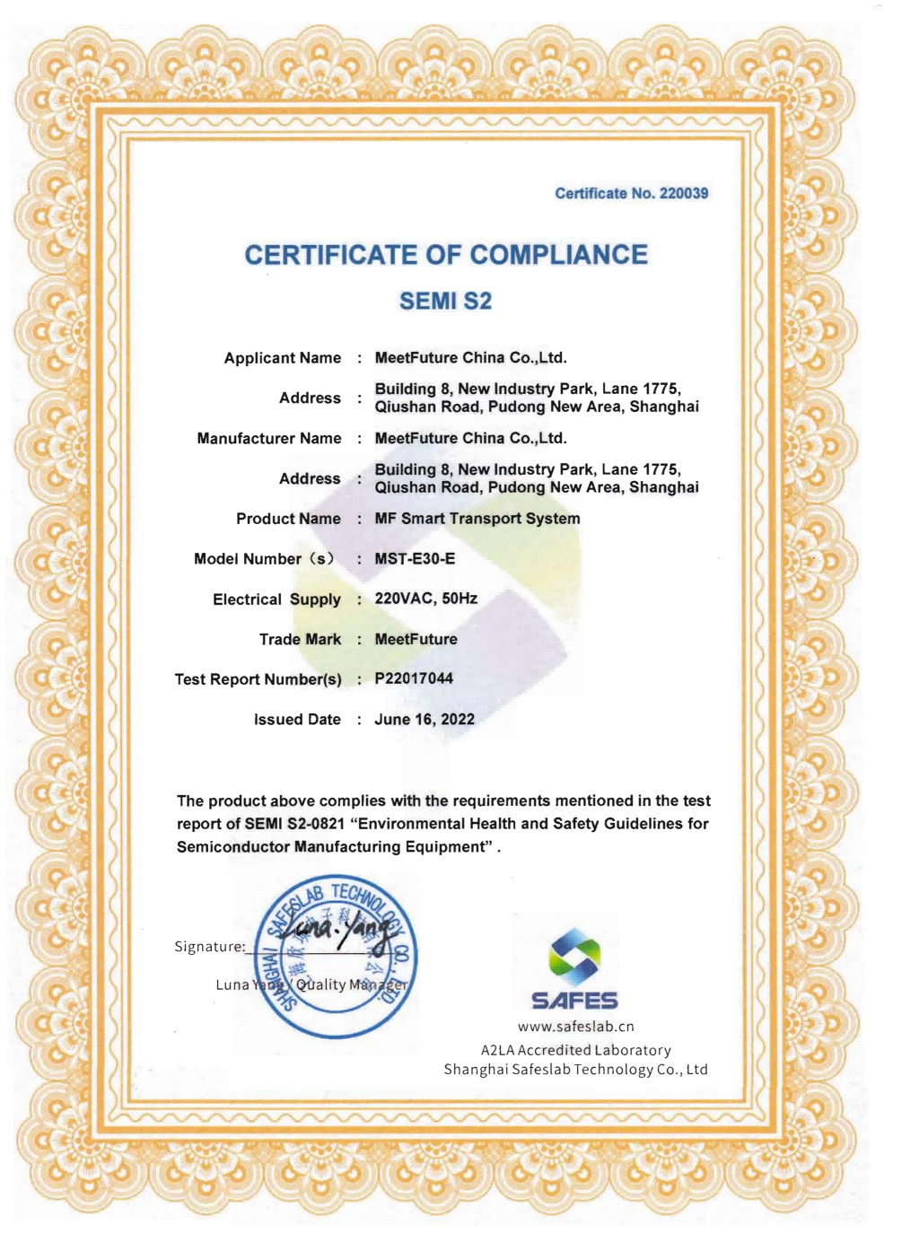 自 2018 年以来,腾博会官网科技取得了国际标准化组织(ISO)质量管理体系(ISO 9001)、环境管理体系(ISO 14001)和职业健康安全管理体系(ISO 45001)认证。在AMHS产品技术体系领域,我们遵循半导体设备标准通讯协议,包括SEMI E37、 E82、E30、 E84、E10 等,使其易接入半导体晶圆厂MES系统来实现数据交互。